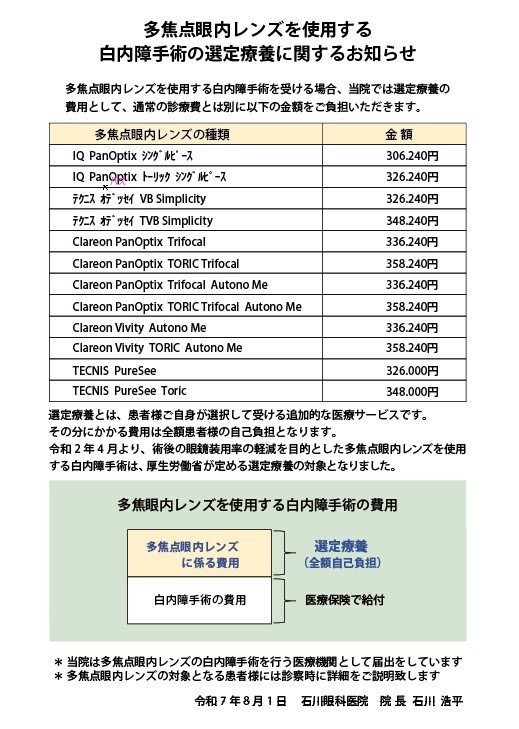 ・近視進行植生治療期間【再来】:2.000円